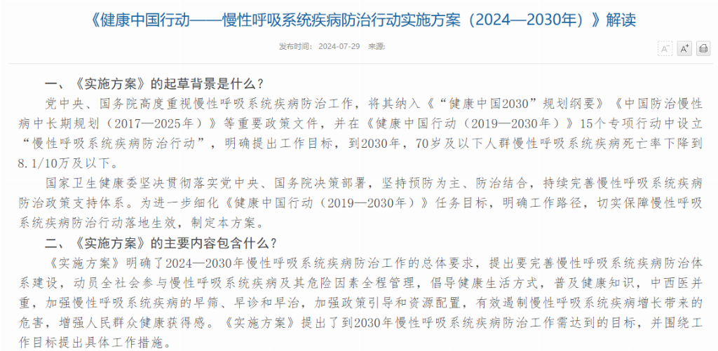 (《健康中国行动——慢性呼吸系统疾病防治行动实施方案(2024—2030年)》解读-部分)
